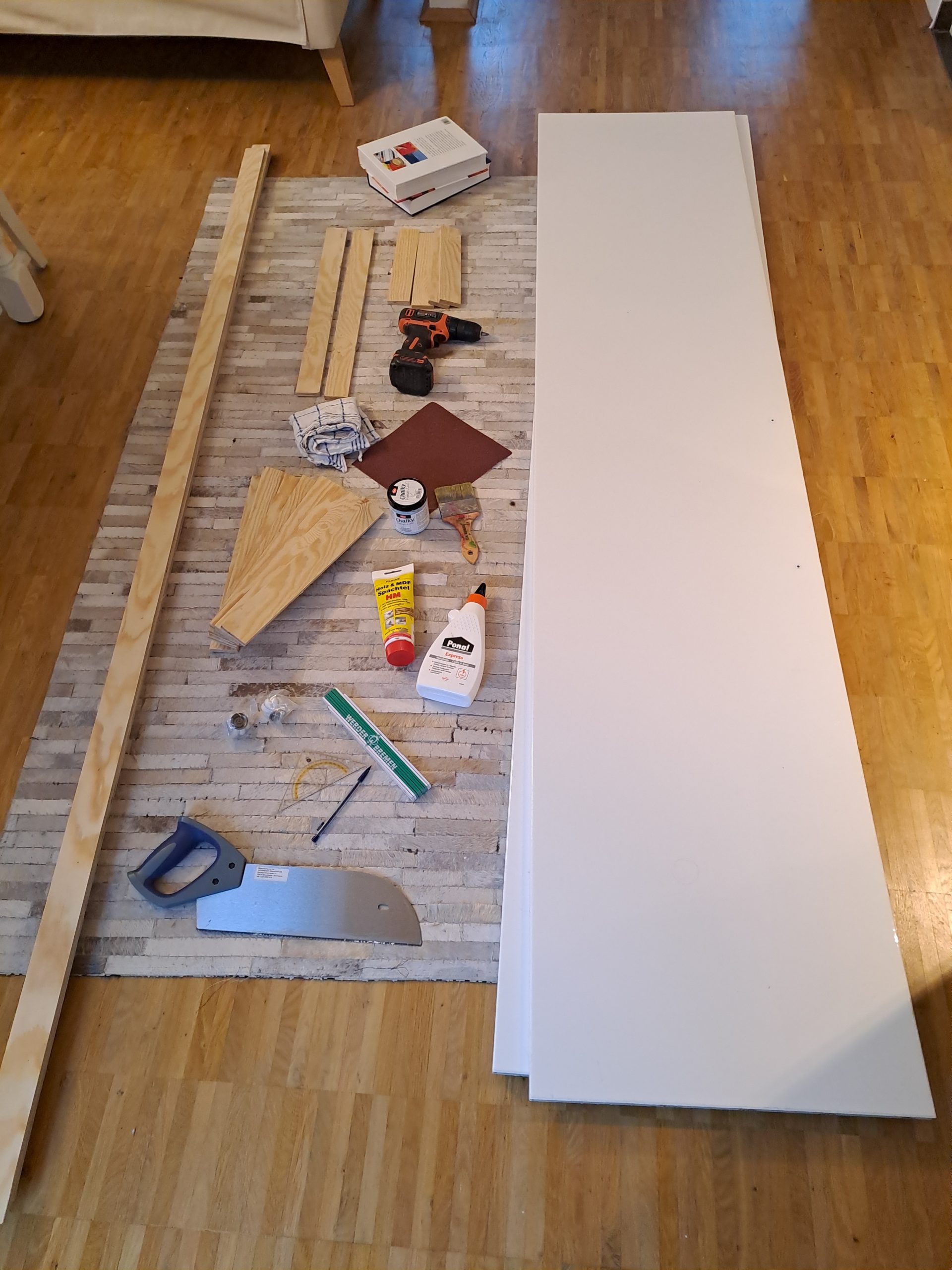 - mittelgrobes Schleifpapier (und idealerweise eine Schleifmaschine)