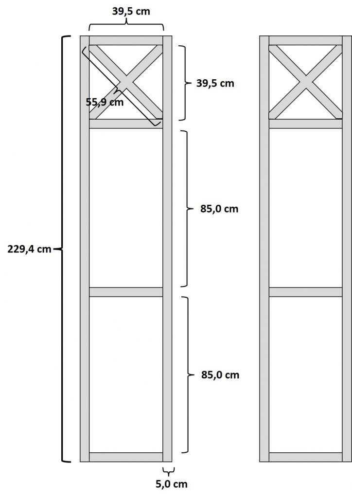 - 2 x Holzleisten mit den Maßen: 229,4 cm (H) x 5,0 cm (B) x 1 cm (T)