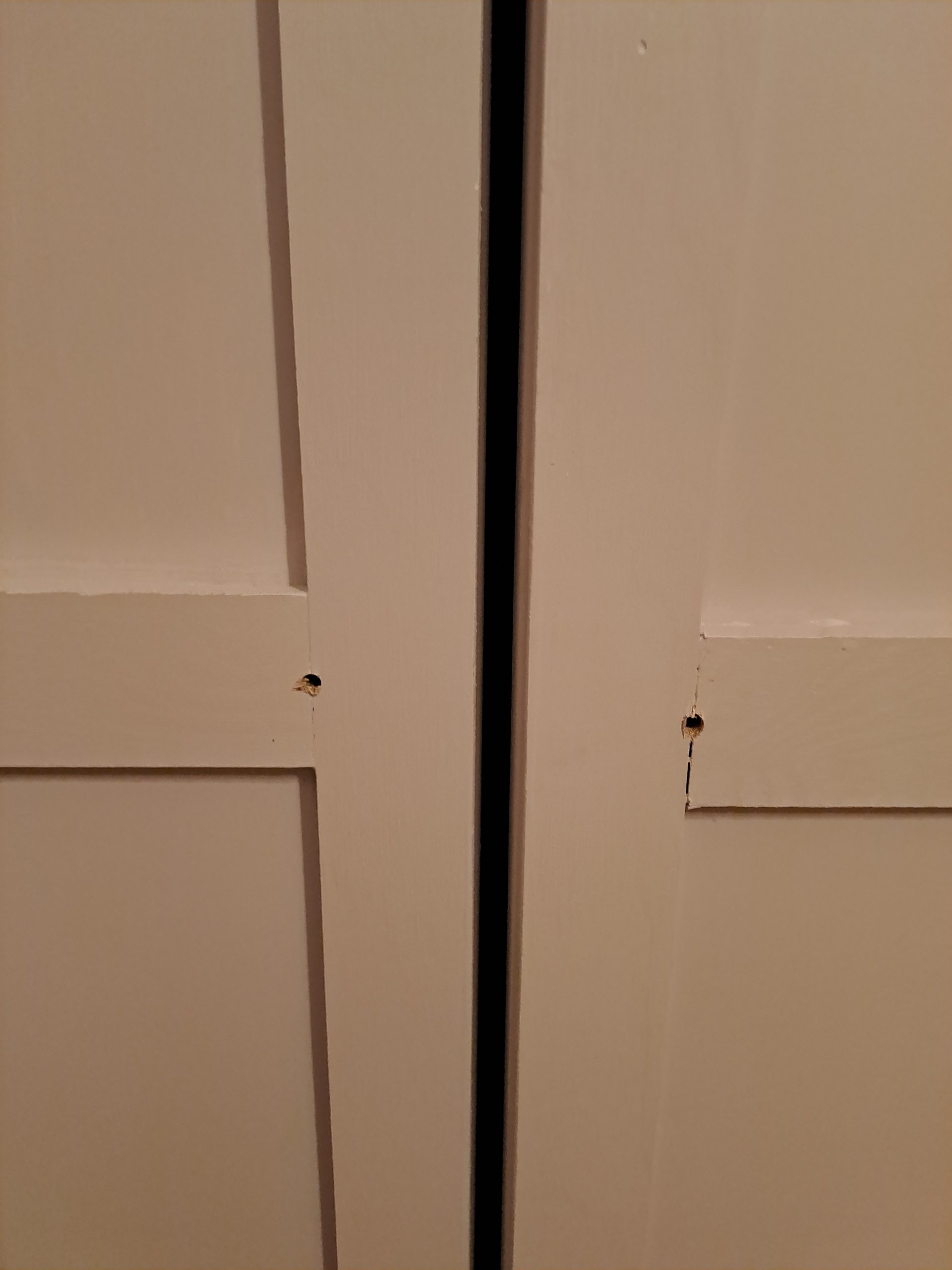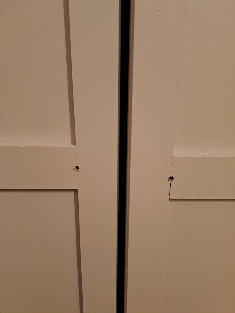 Zum Schluss müsstest Du nur noch zwei Löcher in die Balken und Türen bohren und die Handgriffe wieder anbringen. Als letzten Schritt noch die Türen wieder an die Halterungen anbringen und voilà: fertig ist Dein neuer Schrank für unter 100€.